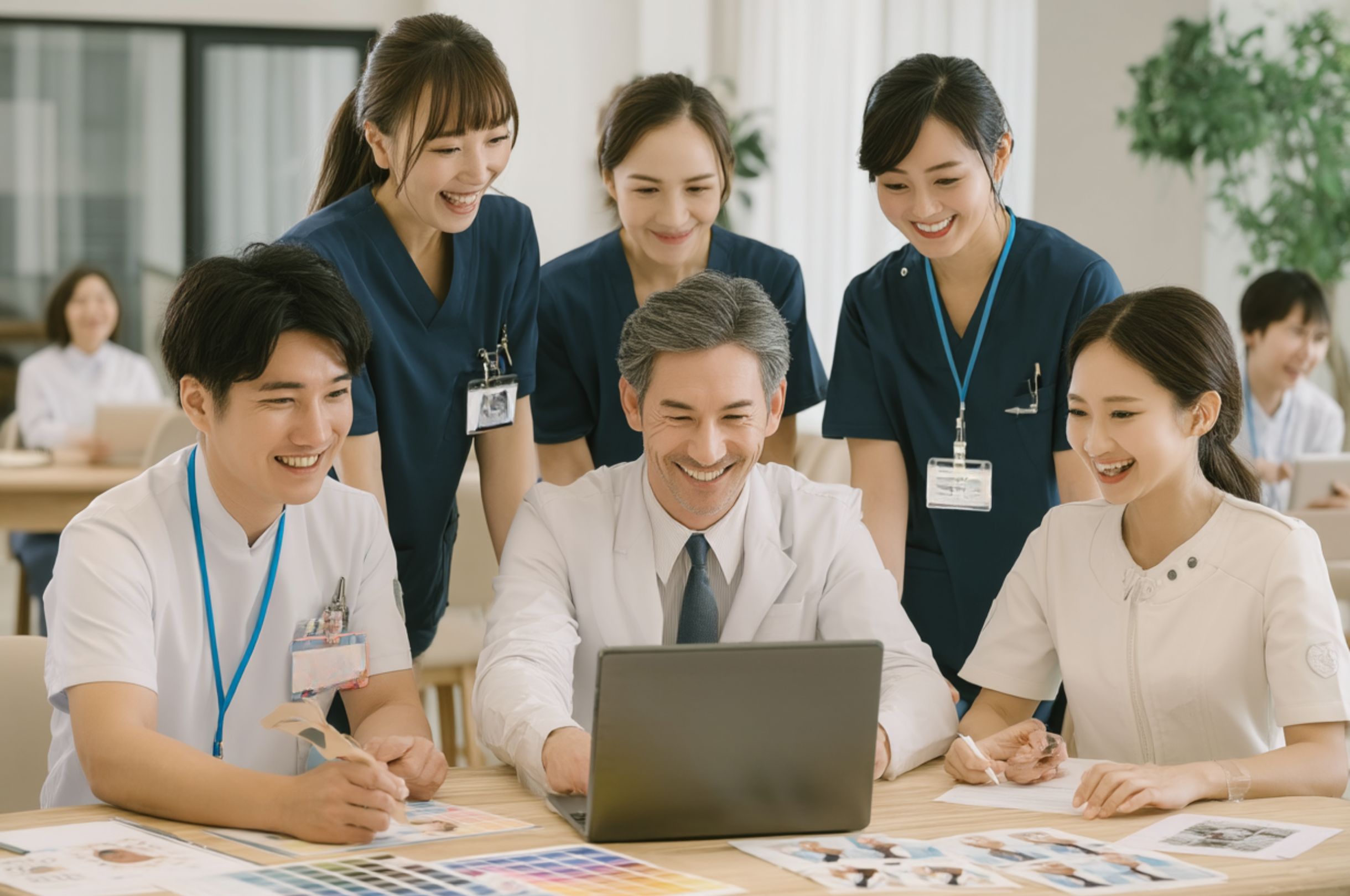 採用活動は、院長や事務長だけのものではありません。リクルートブックの制作では、スタッフ一人ひとりに「自分たちの働く場をどんなふうに伝えたいか」を聞きながら進めます。その過程で、現場の当事者意識が育ち、採用成功が“みんなごと”になります。