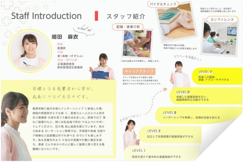 完成したリクルートブックは、新入職スタッフ向けの導入ツールとしても活用されています。「どんな価値観で働いているか」「誰がどんな役割を担っているか」が一目でわかる冊子は、教育・定着・理念共有にも有効です。